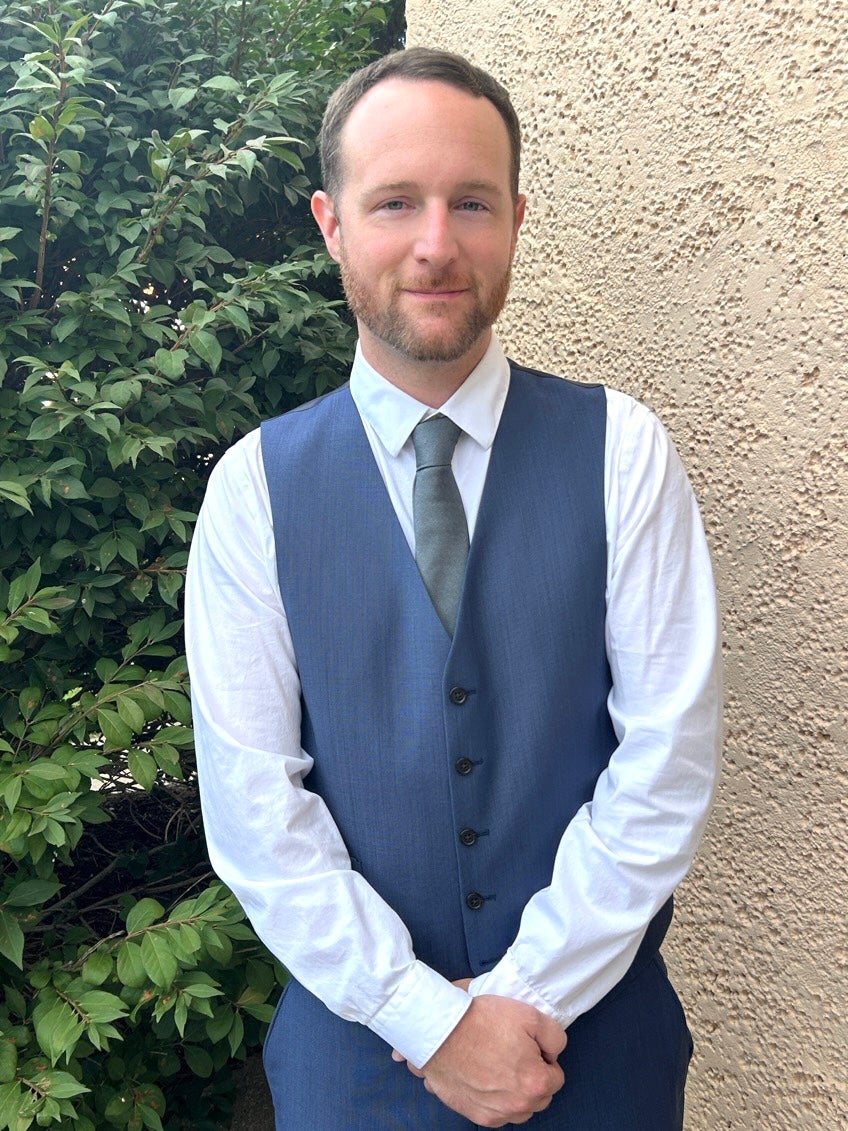 Mark Miller standing in front of wall.
